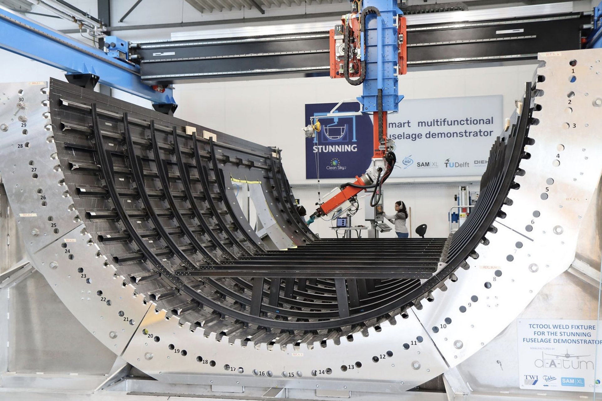 The Dutch composite industry is a forerunner in the field of thermoplastic composite in automated processes. The aim is to maintain and expand this lead. The European project STUNNING is a collaboration between 14 partners, including the Dutch partners SAM XL, GKN Fokker, Nederlands Lucht- en Ruimtevaartcentrum and TU Delft (all members of our industry partner CompositesNL). A number of techniques and processes in which the Netherlands has a leading position come together in this project. Project STUNNING demonstrates the use of new advanced thermoplastic materials and manufacturing techniques in hull construction. This time the STUNNING project is explained, with funding from the European program Clean Sky 2.