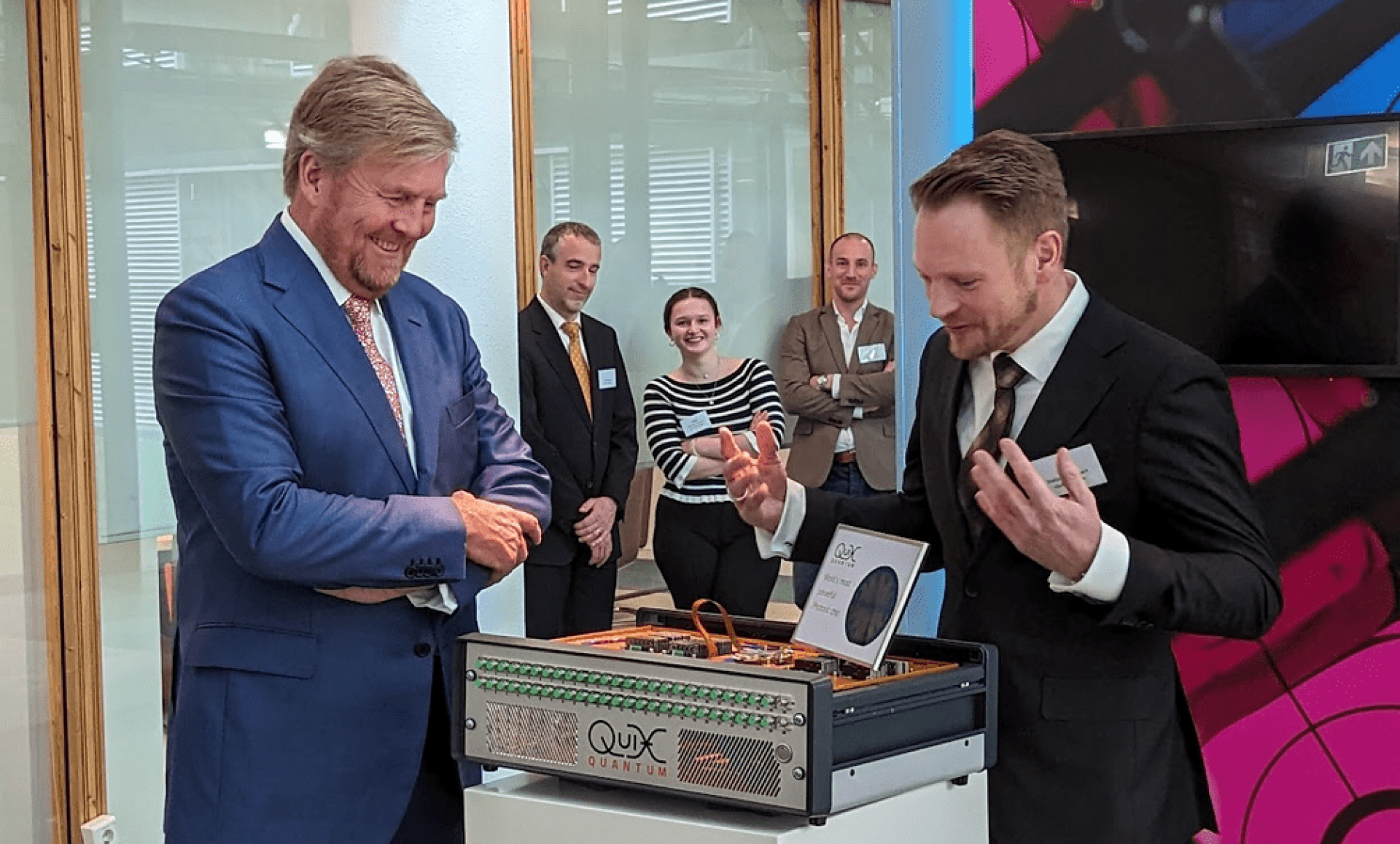 The strength of the Netherlands as a market maker, the importance of a European ecosystem and a barrage of examples of applications that will determine our world in the coming years. That is the common thread of the visit that a very interested King Willem-Alexander paid today to the High Tech Campus in Eindhoven. Everything revolved around integrated photonics, the technology that is seen worldwide as decisive for the development of smaller, faster and energy-efficient devices. With demonstrations in Holst Center and round table discussions at PhotonDelta, the King learned about the essence of the technology, its applications and its importance for the future of the Netherlands and Europe.