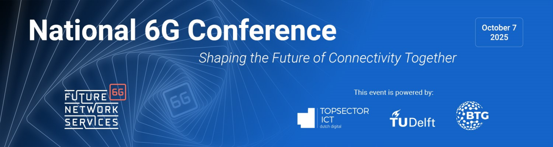 Op dinsdag 7 oktober vindt in het TU Delft Aula Conference Centre de National 6G Conference plaats. Het event biedt industrieleiders, onderzoekers en innovators de gelegenheid de laatste ontwikkelingen in 6G Research & Development in Nederland te verkennen. De dag wordt georganiseerd door Future Network Services (FNS), het consortium van 60 bedrijven, kennisinstellingen en overheden dat zich richt op de ontwikkeling van de volgende generatie mobiele netwerken. Delft University of Technology en BTG treden op als gastheer.