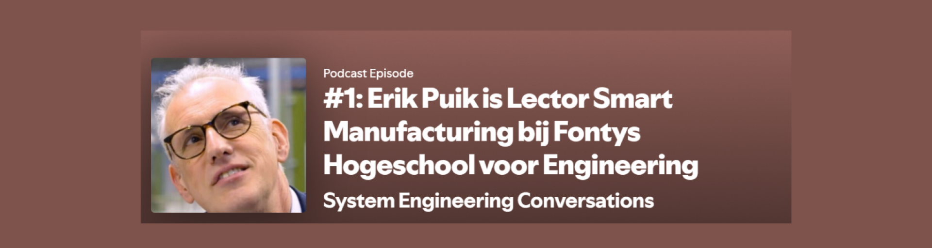 In de eerste aflevering spreekt Erik Puik, lector Smart Manufacturing bij Fontys Engineering, over de belangrijke rol van zijn vakgebied als bruggenbouwer tussen productontwikkeling en maakbaarheid. Onderwerpen die aan bod komen zijn onder andere de noodzaak van technische onderzoeksrichtingen voor de industrie, de universele taal van Systems Engineering, de ontwikkeling van de DASE-methode (Dutch Approach of Systems Engineering), en de betrokkenheid van Fontys Hogeschool in het NXTGEN Hightech project.